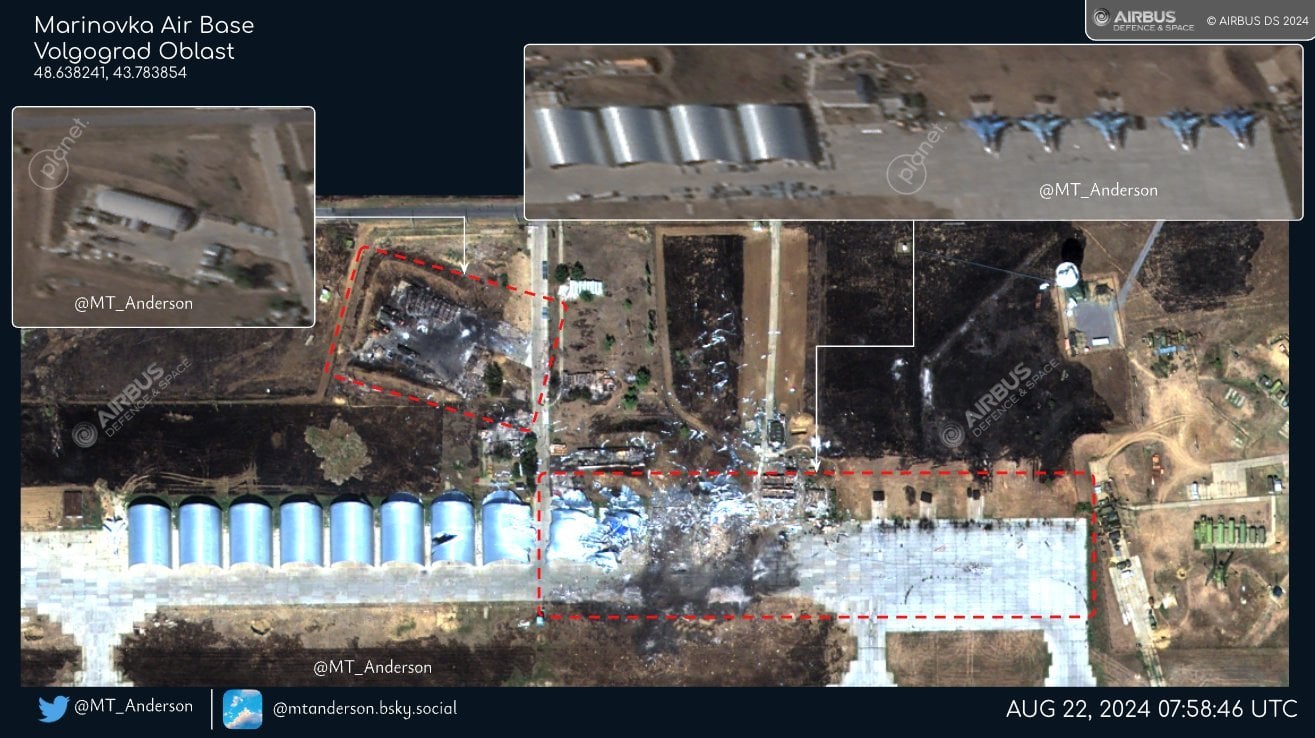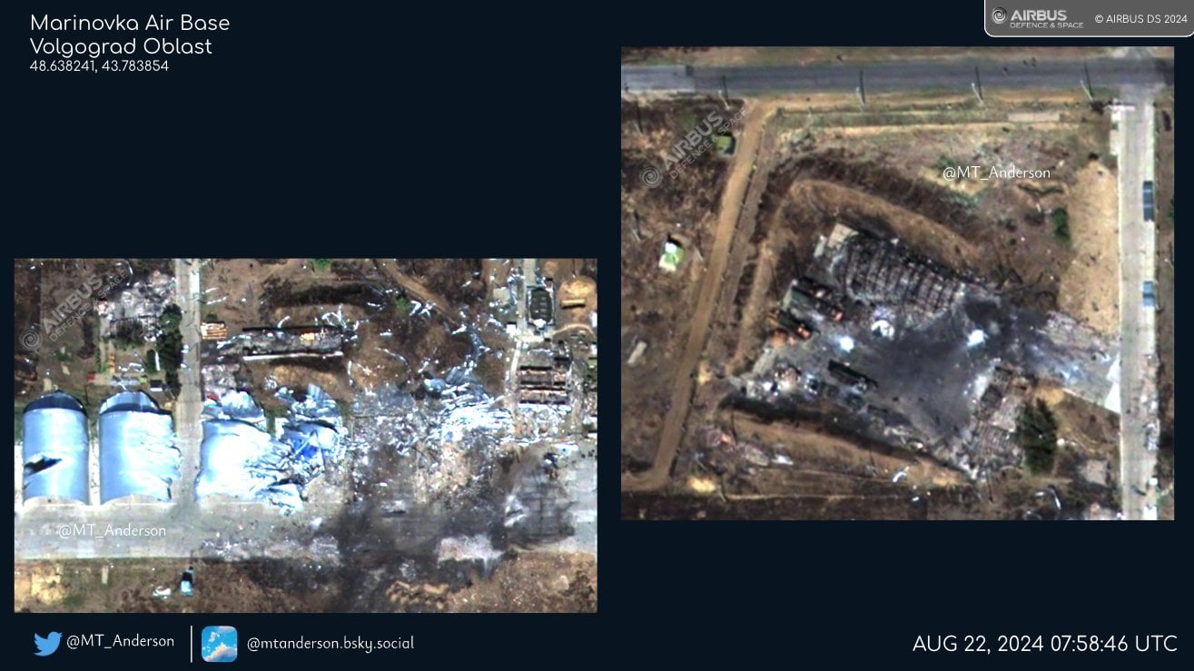 22 серпня джерела NV в українській розвідці повідомили, що Служба безпеки України (СБУ) спільно з Силами спеціальних операцій (ССО) завдали удару по складах із КАБами та пальним на аеродромі Маринівка у Волгоградській області РФ.