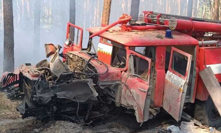 У ДСНС зазначили, що пожежний автомобіль підірвався на ворожому вибухонебезпечному предметі під час гасіння лісової пожежі на деокупованій території поблизу Балаклії.