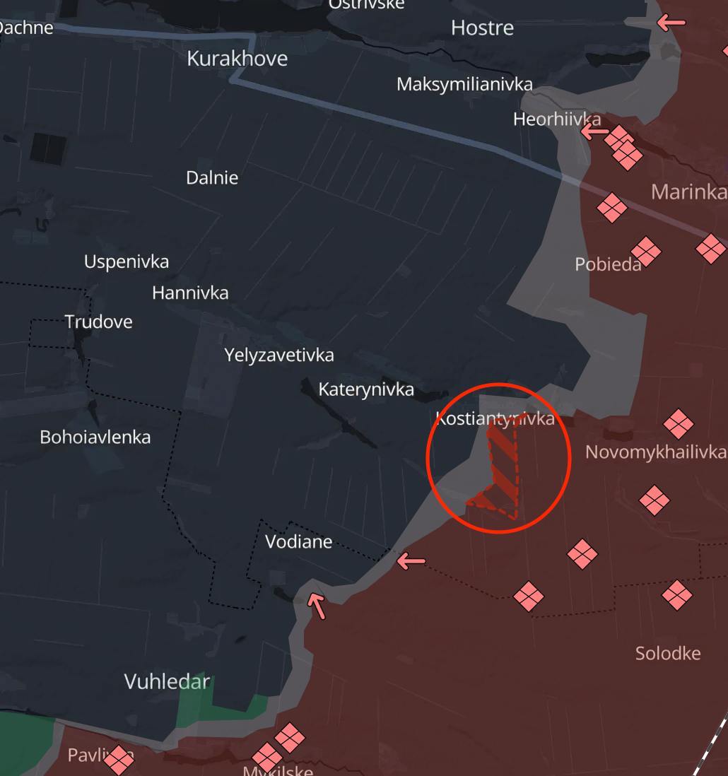 Також армія РФ суттєво просунулась до Костянтинівки у районі Вугледара.