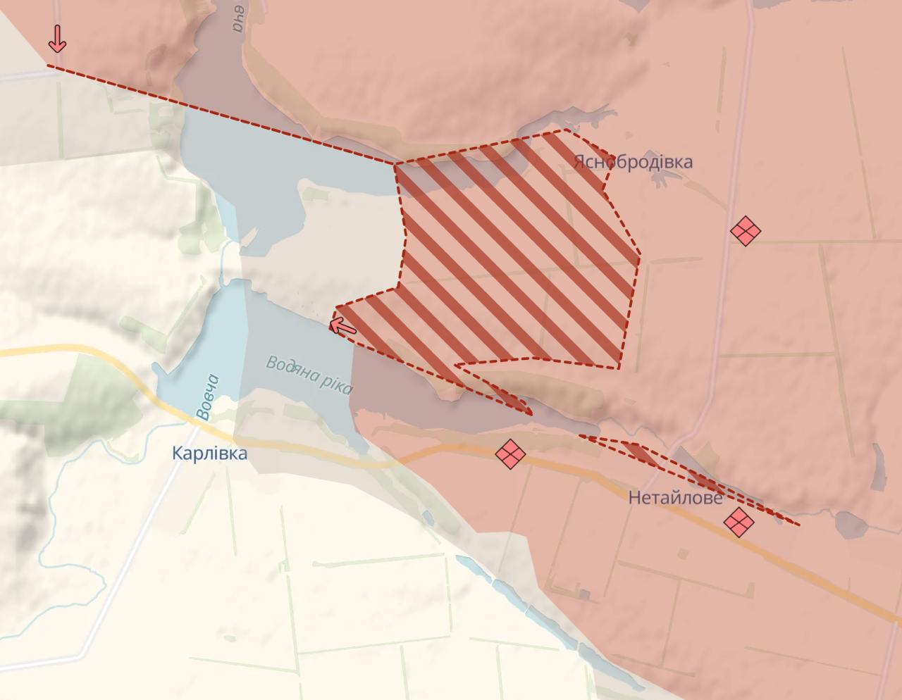 Особливо серйозний поступ під Карлівкою, де ЗСУ створили великий укріпрайон, спираючись на Карлівське водосховище.