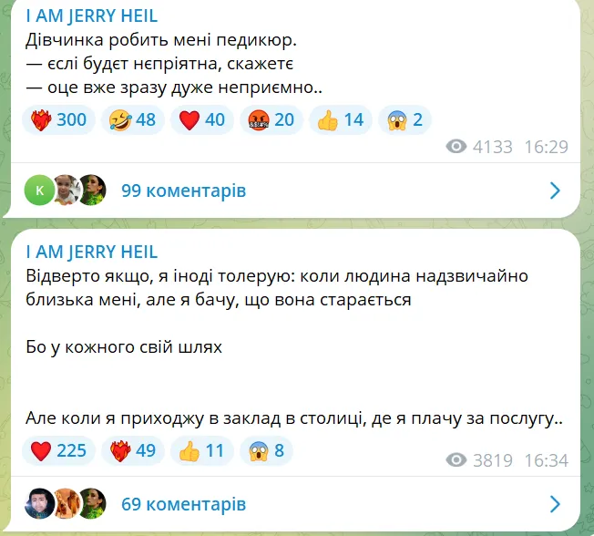 Обурення Jerry Heil підтримали й шанувальники її творчості. У коментарях підписники висловили свої думки щодо інциденту: