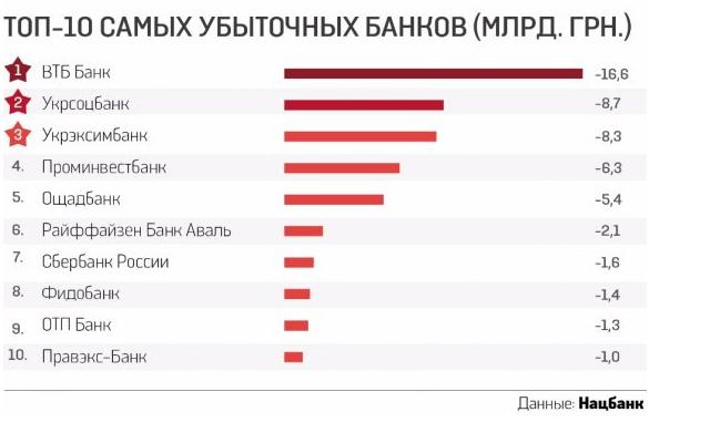Самые большие минусы по итогу третьего квартала показали: ВТБ Банк, Укрсоцбанк, Укрэксимбанк, Проминвестбанк и Ощадбанк. А в десятку вообще вошел весь ТОП-20 нашей банковской системы. В число самых зарабатывающих тоже вошли «дочки» иностранных структур: первое и третье заняли Ситибанк и ИНГ Банк Украина, соответственно, а между ними на второе место втиснулся РБС Банк — переходный банк, который создали для передачи активов проблемного Омега Банк. Десятку прибыльных финучреждений замкнул крупнейший банк страны — Приватбанк.