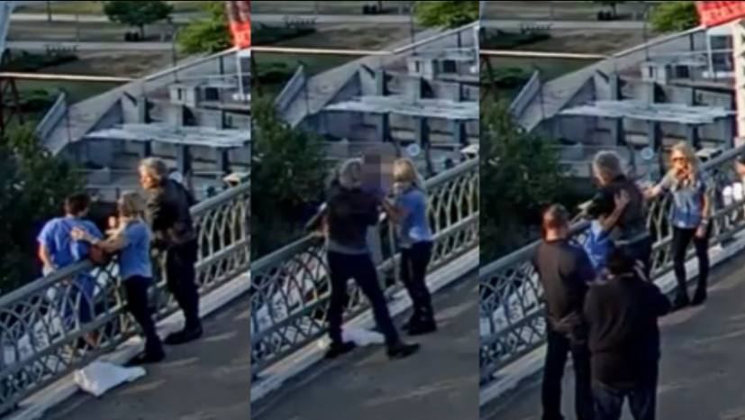 До неї підходить Бон Джові у супроводі ще однієї жінки, вони ведуть розмову і, судячи із запису, намагаються її заспокоїти. Потім вони допомагають їй перебратися через огородження на пішохідну частину. Після цього музикант та інші люди відводять жінку з мосту.