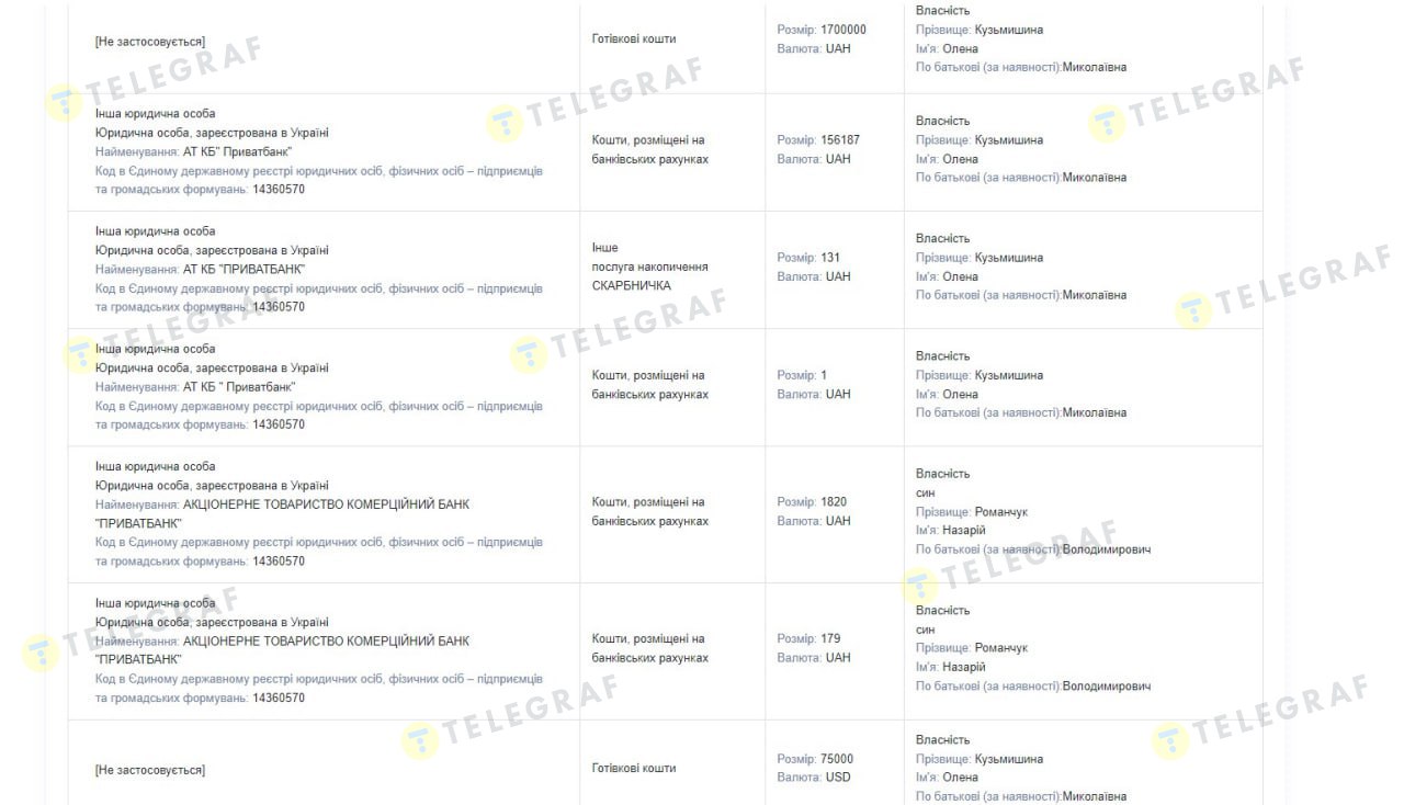 - Готівка: 1,7 млн гривень та 75 тисяч доларів США.