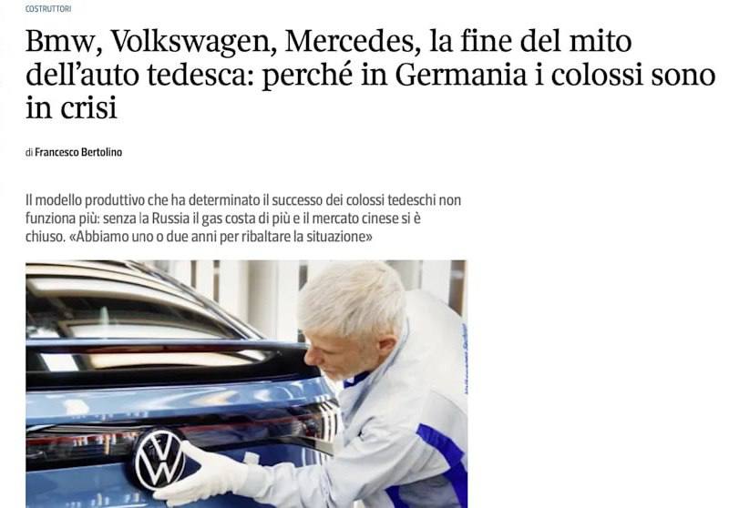 Провідна газета Італії оголосила про «кінець міфу про німецькі автомобілі».