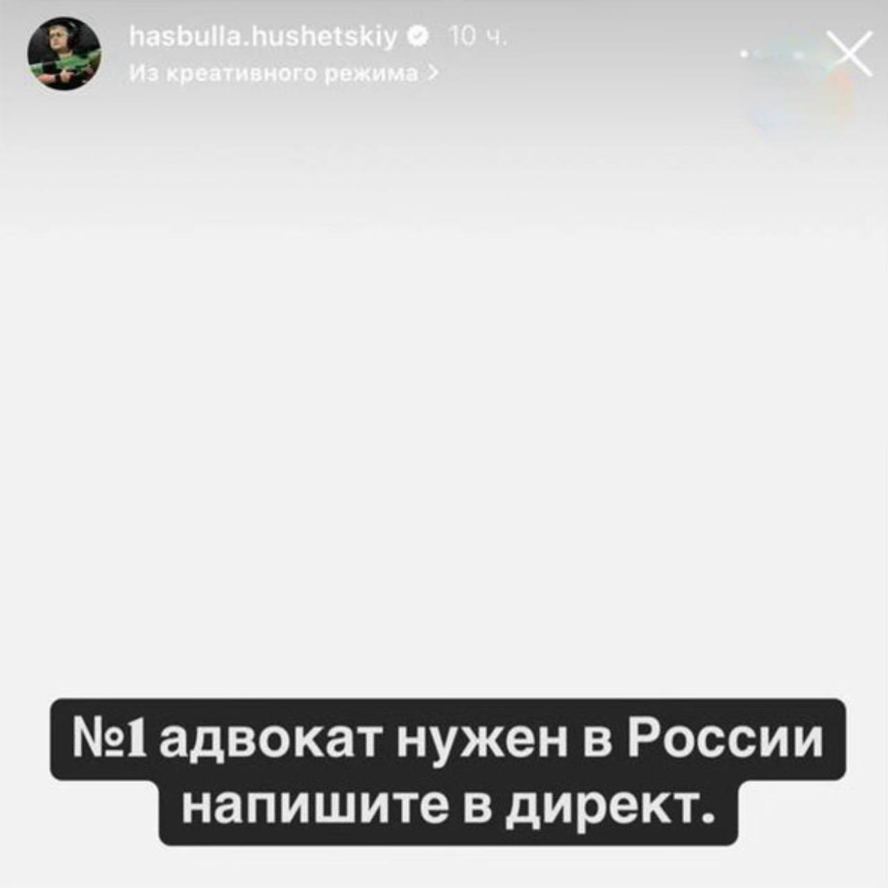 Напередодні ввечері Хасбулла Магомедов опублікував у сторисах у забороненій інсти фотографію ракети КСІР Ірану, яка вдарила по землі в одному із ізраїльських міст, з підписом: Welcome to Israel. Сторіс пробула на обліковому записі близько 10 годин, після чого блогер її видалив і виклав новий контент - попросив надати контакти «№ 1 адвоката в Росії».