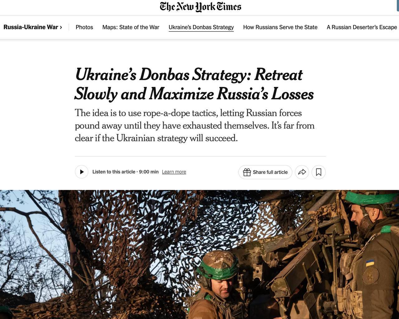 Видання також цитує інших неназваних українських командирів та військових експертів, які стверджують, що війна з РФ переходить у стадію виснаження.