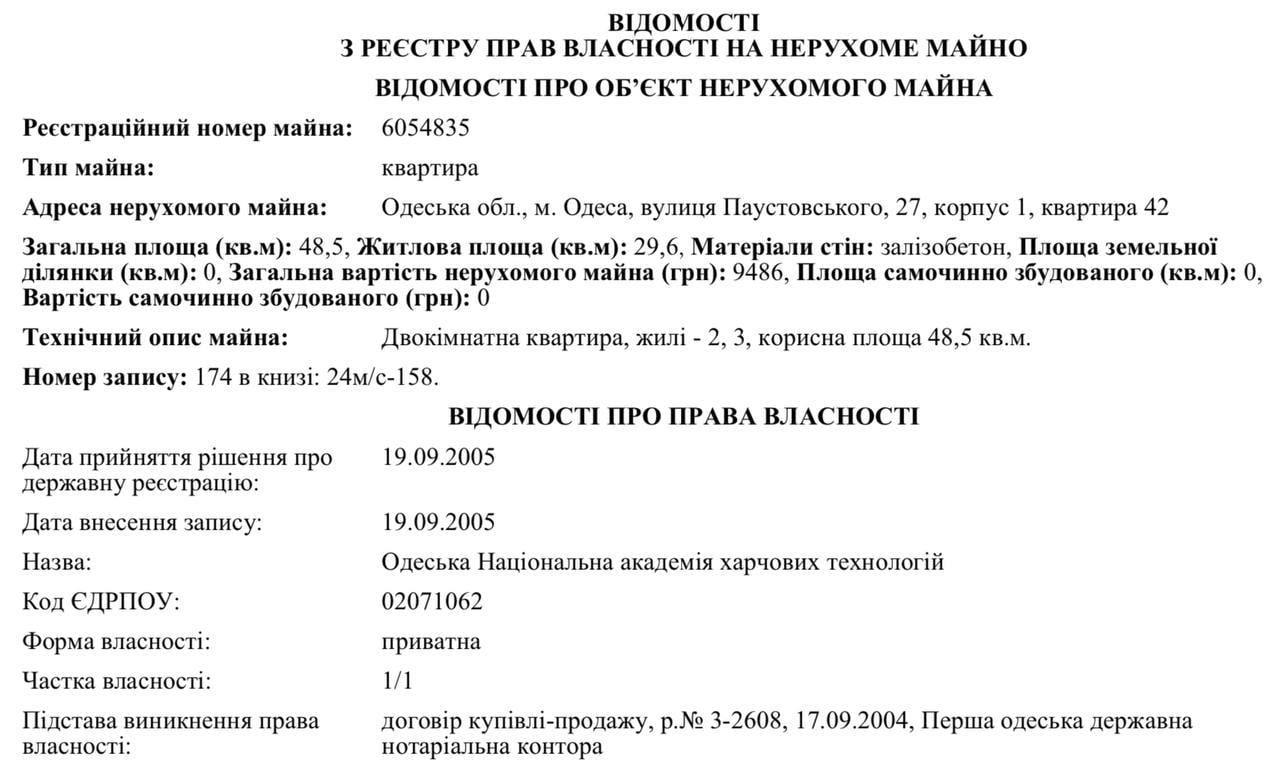 «Фантоми-квартири» ексректора одеської «Харчової академії» Богдана Єгорова