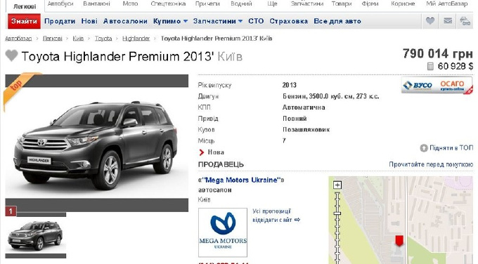 На вторичном рынке подобный внедорожник Toyota Highlander, 2013 года, в зависимости от комплектации можно купить от 650 до 790 тысяч гривен.