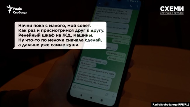 «Почни поки що з малого, моя порада. Якраз і придивимося один до одного. Релейна шафа на залізниці, машини. Ну щось дріб’язкове спочатку зроби, а далі вже найбільші куші», – написав в одному з повідомлень «куратор», коли з ним залегендовано спілкувались журналісти.