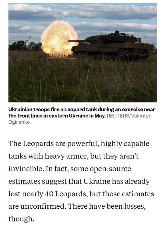 Як повідомляє американське видання Business Insider, ЗСУ вже втратили 40 таких танків (при цьому підкреслюється, що офіційного підтвердження цих даних немає).