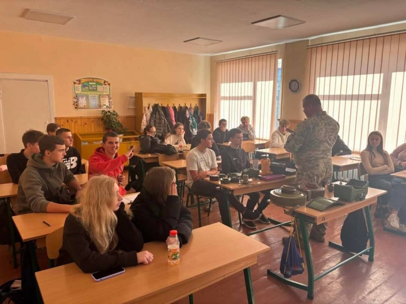 Військовослужбовці РТЦК та СП проводять зустрічі зі старшокласниками, під час яких розповідають про структуру ЗСУ, сучасні види озброєння та важливість захисту держави від загарбників.
