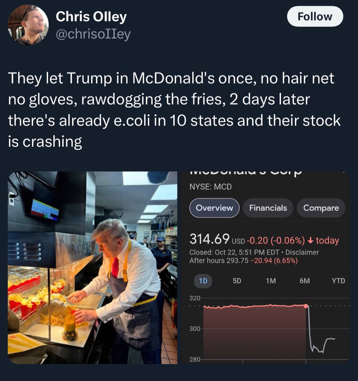 Акції McDonald’s за день впали на 9% після масового отруєння одним з видів бургерів у США.