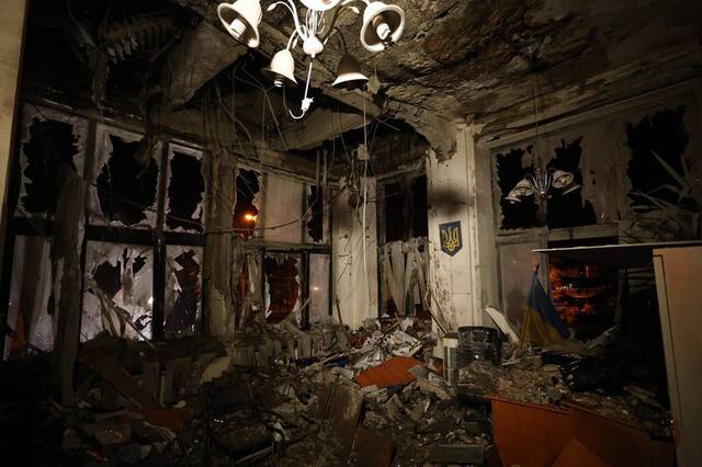 В ОВА показали наслідки обстрілу адміністративної будівлі в центральній частині Харкова.