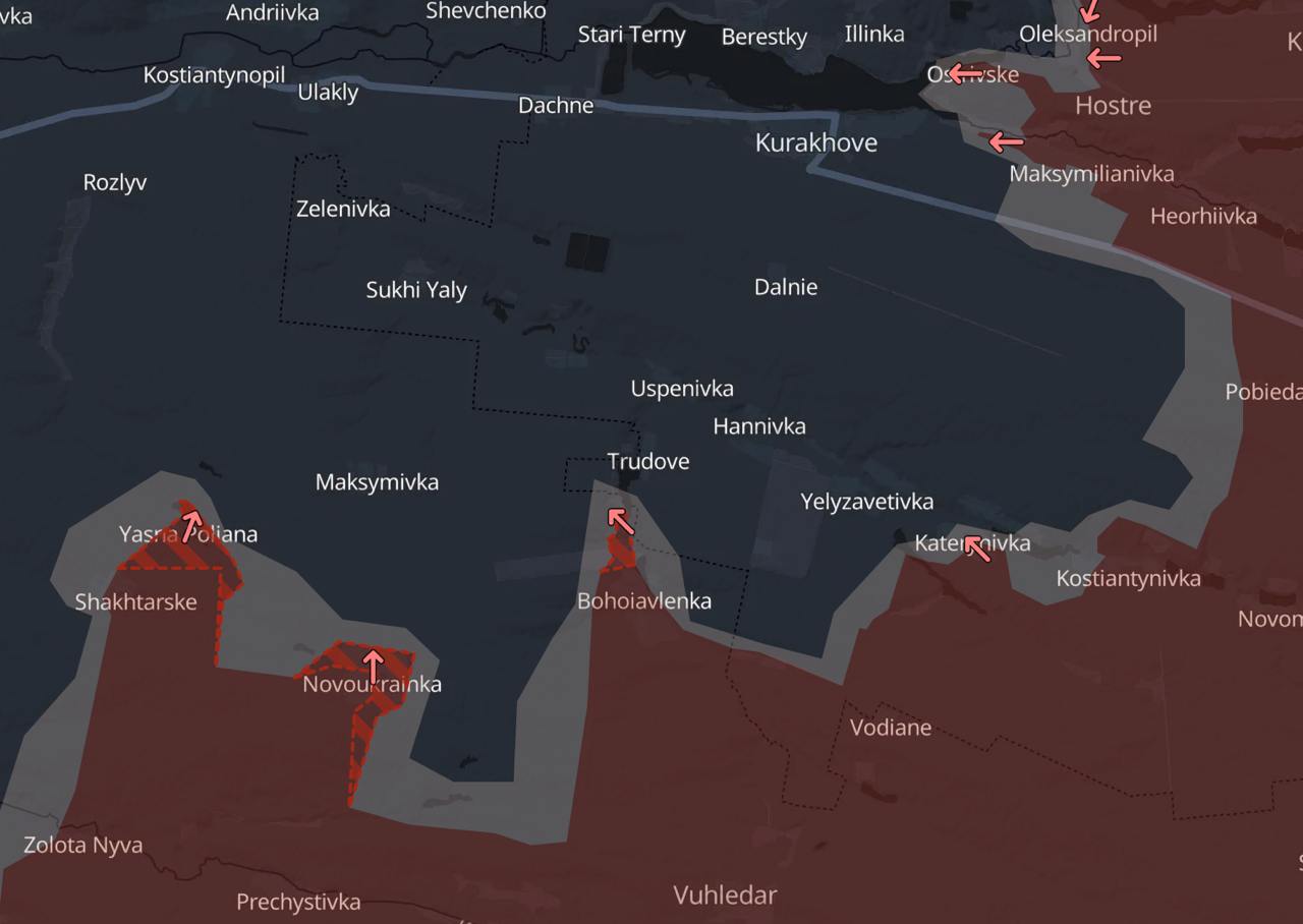 Згідно з інформацією з джерела DeepState, вони заволоділи Новоукраїнкою та Богоявленкою (про це вчора вже повідомляли як українські військові, так і російські джерела).