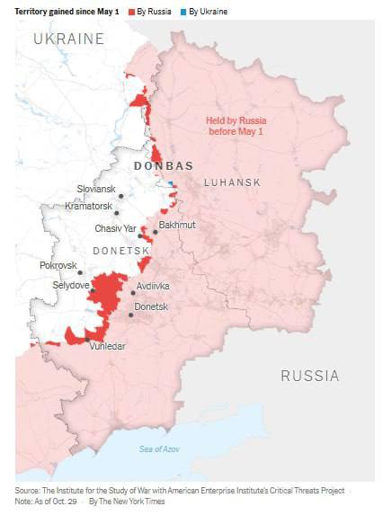 Згідно з The New York Times, окрім нестачі солдат і зброї у ЗСУ, швидкому просуванню РФ в останні місяці сприяє відсутність українських укріплень.
