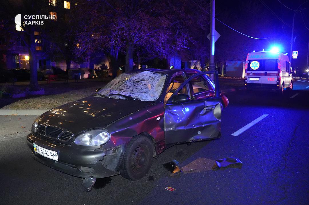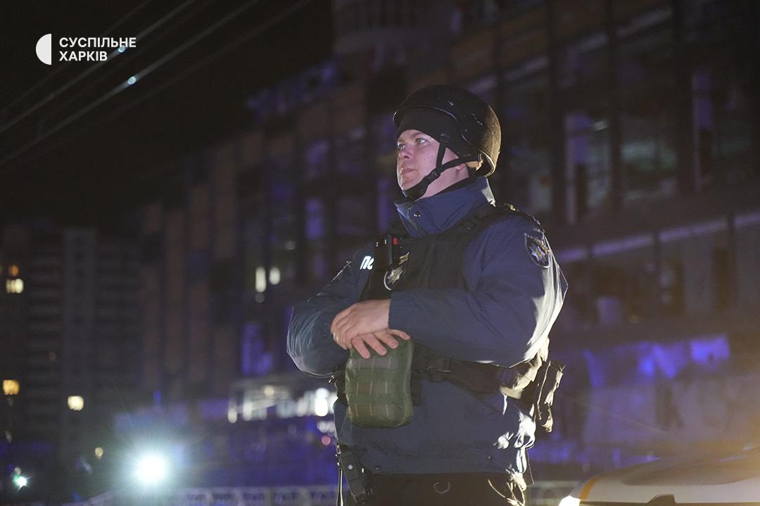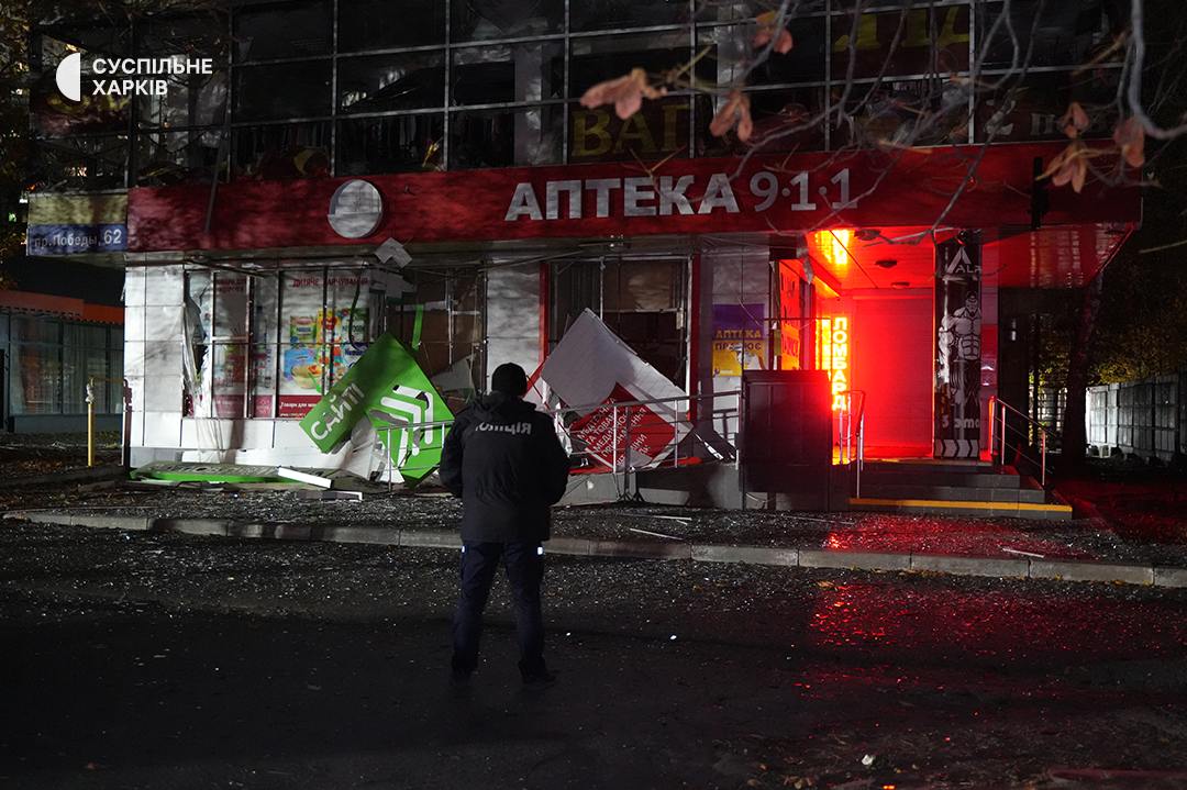 Одне з попадань зафіксовано неподалік житлових будівель Шевченківського району Харкова. Постраждали багатоповерхові житлові будинки, легкові автомобілі, будівля супермаркету та інші торговельні об’єкти.