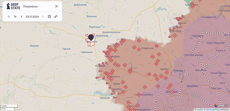 Це місто має важливе логістичне значення. Про це заявив офіцер 15-ї бригади оперативного призначення НГУ Віталій Міловидов в неділю, 3 листопада, в інтерв’ю Українському радіо. За його словами, важкі бої також тривають у Селидовому – ворог розпочав штурм наприкінці жовтня за допомогою значних резервів.