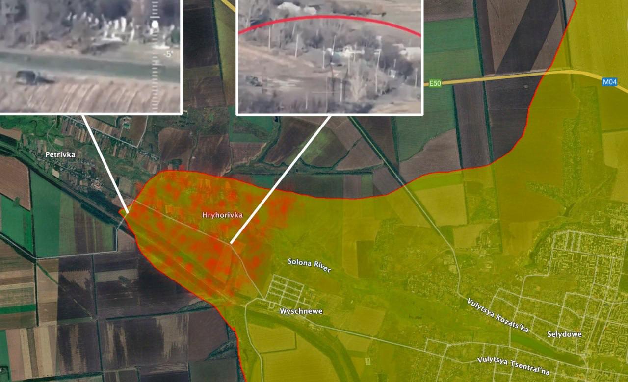 Посилаючись на геолокаційні кадри з російських джерел, він стверджує, що росіяни вже захопили Григорівку західніше Селидового і ведуть наступ на Петрівку.