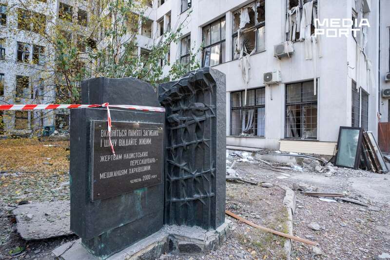 Російська авіабомба 28 жовтня влучила у Держпром з боку проспекту Незалежності. Фото від 29 жовтня