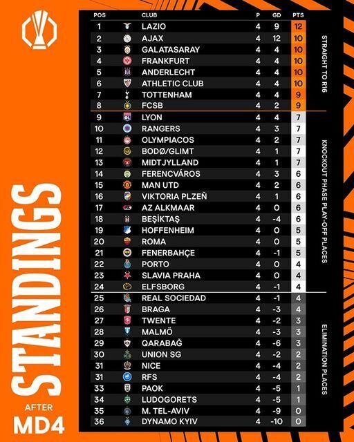 Зазначимо, що після чотирьох ігрових днів "Динамо" замикає турнірну таблицю Ліги Європи, займаючи 36-те місце. Кияни не мають в активі набраних очок і навіть забитих м’ячів.