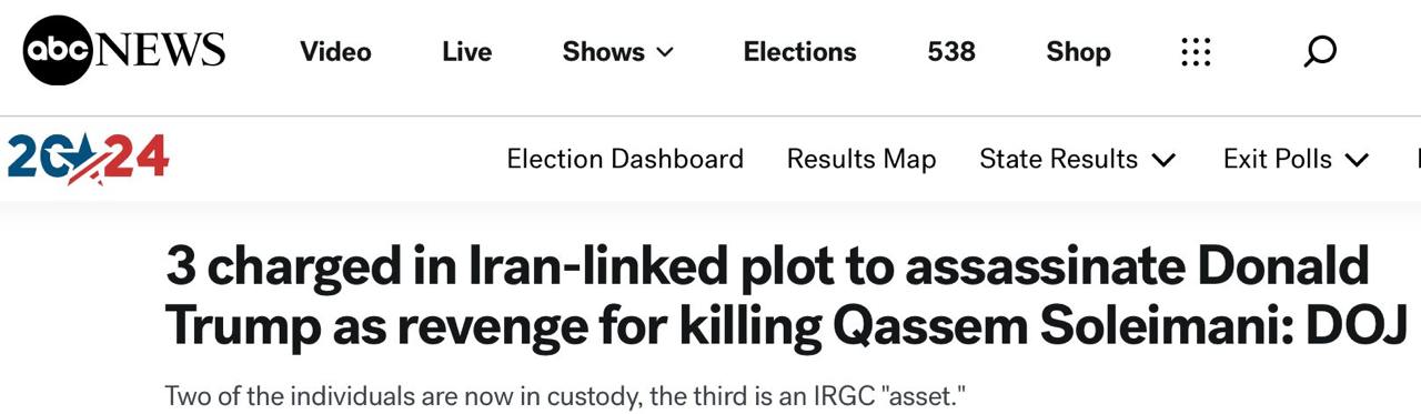 «Міністерство юстиції висунуло звинувачення проти представника іранського уряду, якому було доручено організувати мережу спільників-злочинців для реалізації планів Ірану щодо вбивства своїх цілей, включаючи обраного президента Дональда Трампа», – йдеться у статті.