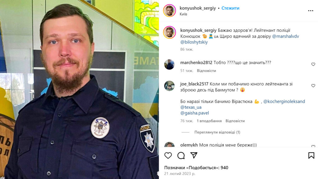 Наша розмова з Сергієм Конюшком була досить короткою. Він сказав, що коментарів не буде. Ми надіслали запит у Національну поліцію України із запитанням, чи дійсно та коли Сергій почав працювати в департаменті патрульної поліції. На момент публікації матеріалу відповіді ми не отримали.