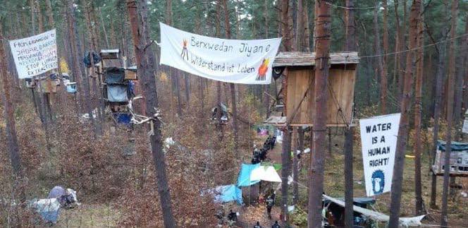 Активісти протестують проти знищення понад 100 гектарів лісу заради будівництва заводу. Табір, створений у лютому, не вдалося розігнати поліції.