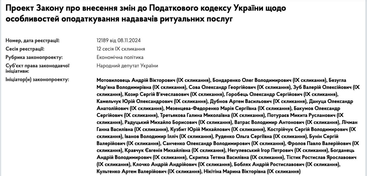 Він передбачає скасування пільгової системи оподаткування для компаній, які надають ритуальні послуги, та введення ПДВ.