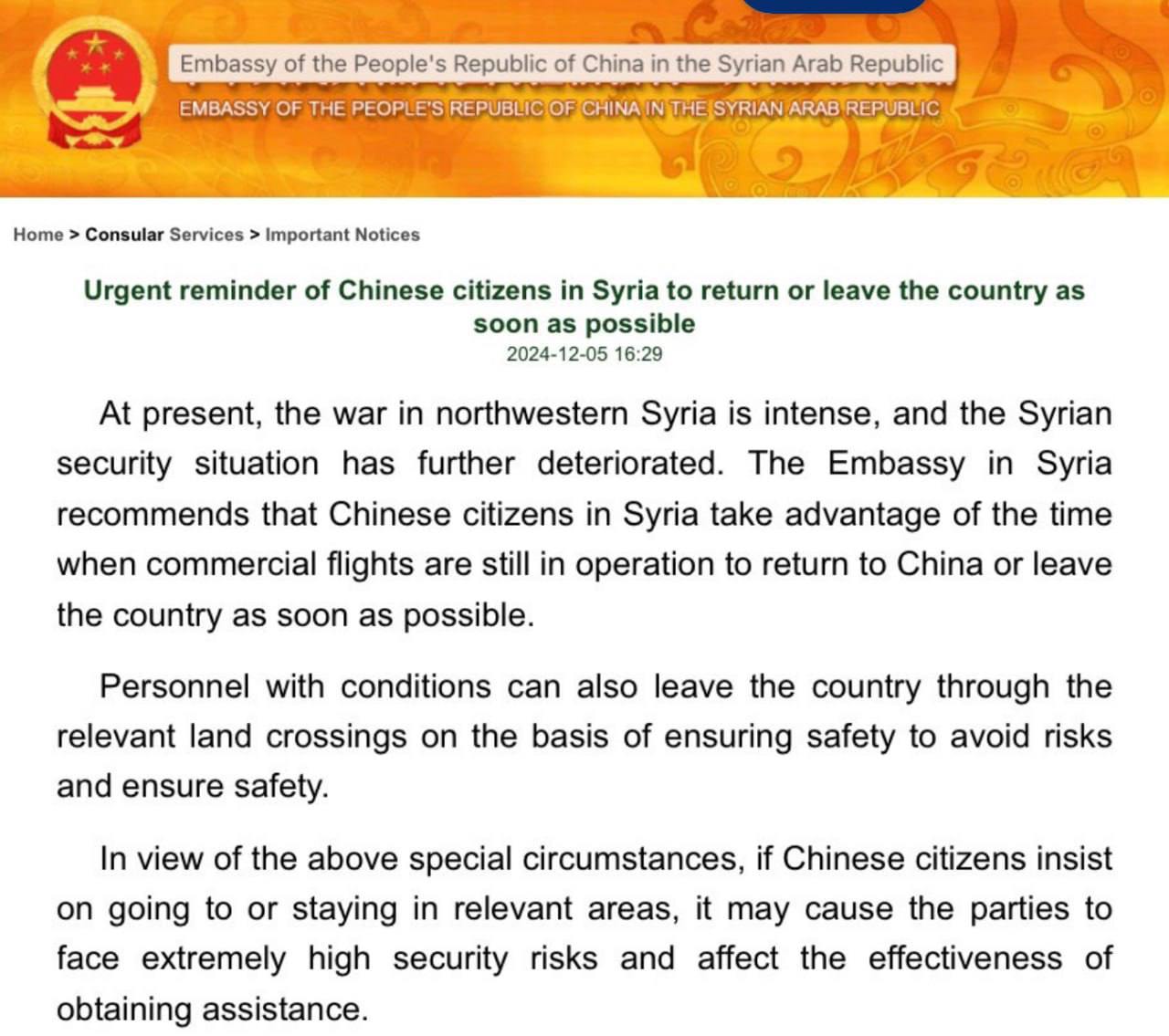 Китай звернувся до своїх громадян з проханням якнайшвидше покинути Сирію