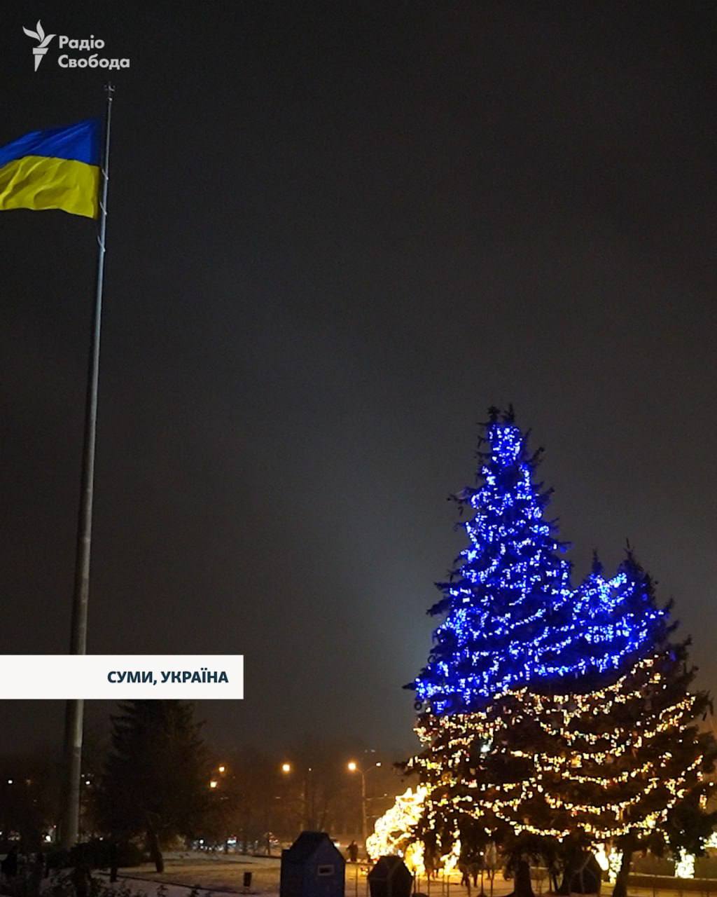- У Сумах прикрасили живі дерева в центрі міста замість штучної ялинки.