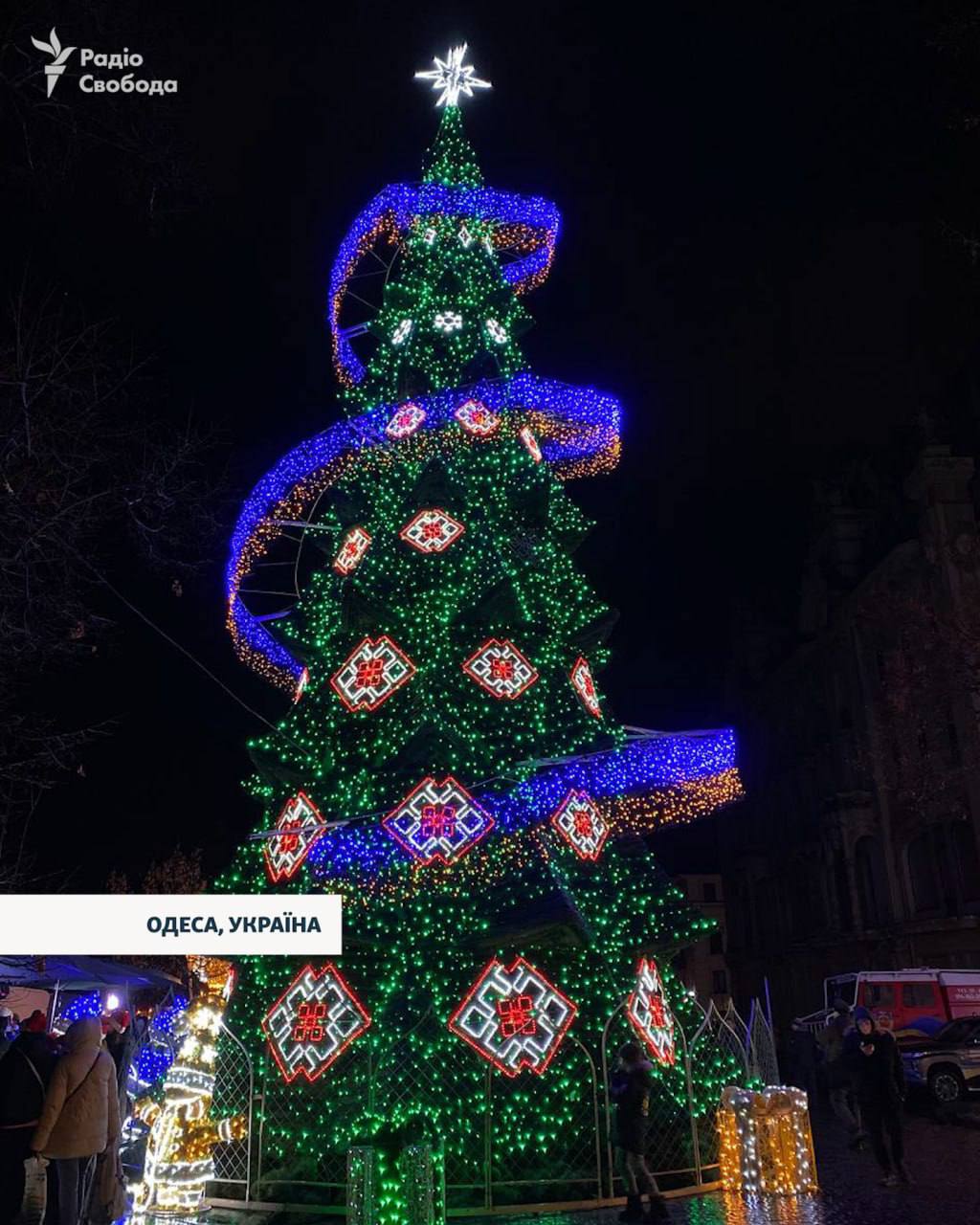 - В Одесі 20-метрова штучна ялинка працює від генератора.