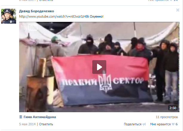Нинішній поліцейський Карпеченков активно репостив дописи груп антиайдану і сепаратистської організації «Народная Дружина»