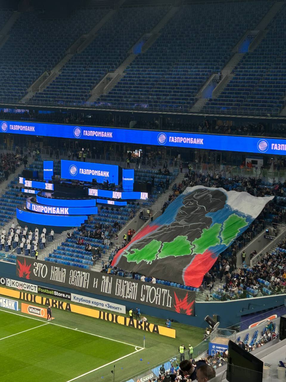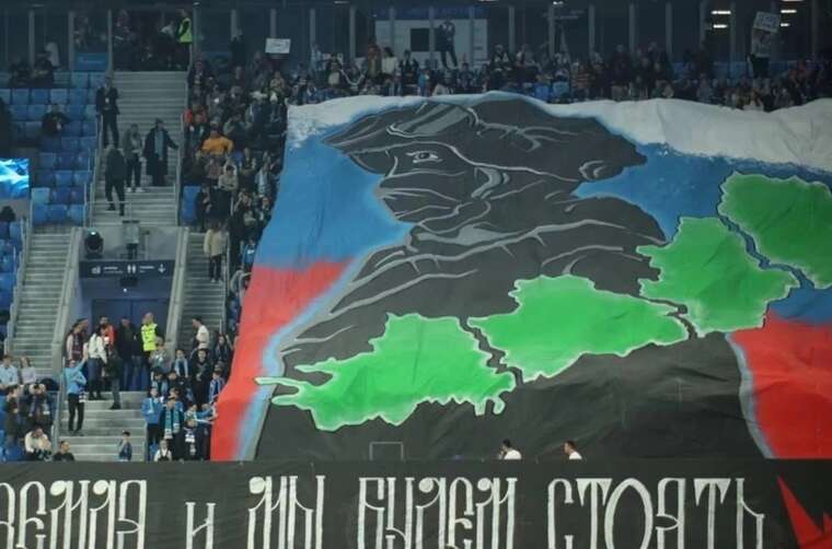 Під час матчу 18-го туру чемпіонату Росії з футболу між клубом "Зеніт" та "Акроном" шанувальники пітерської команди розгорнули банер на підтримку повномасштабного вторгнення в Україну. На банері зображено кордони так званих ДНР, ЛНР, а також Херсонської та Запорізької областей на тлі російського прапора та силуету солдата.