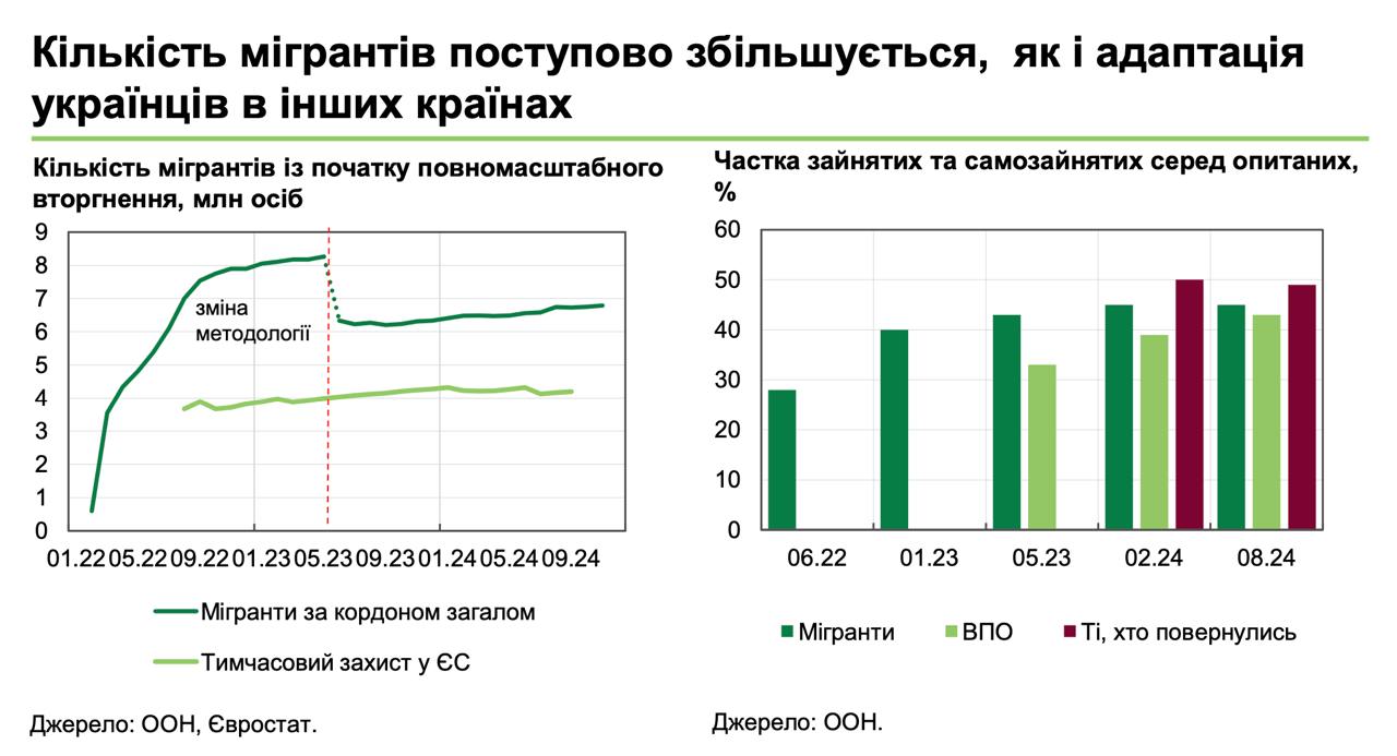 Згідно з даними ООН, опублікованими у звіті НБУ, 6,8 мільйона українців виїхали за кордон у статусі біженців.