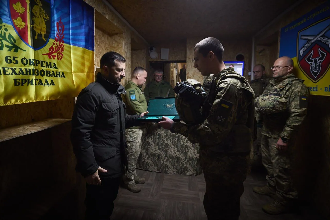 Крім того, Володимир Зеленський відвідав передовий командний пункт 65-ї окремої механізованої бригади, яка відповідає за оборону Запоріжжя. Він провів важливу та щиру розмову з командиром бригади, командирами батальйонів і рот та нагородив воїнів.