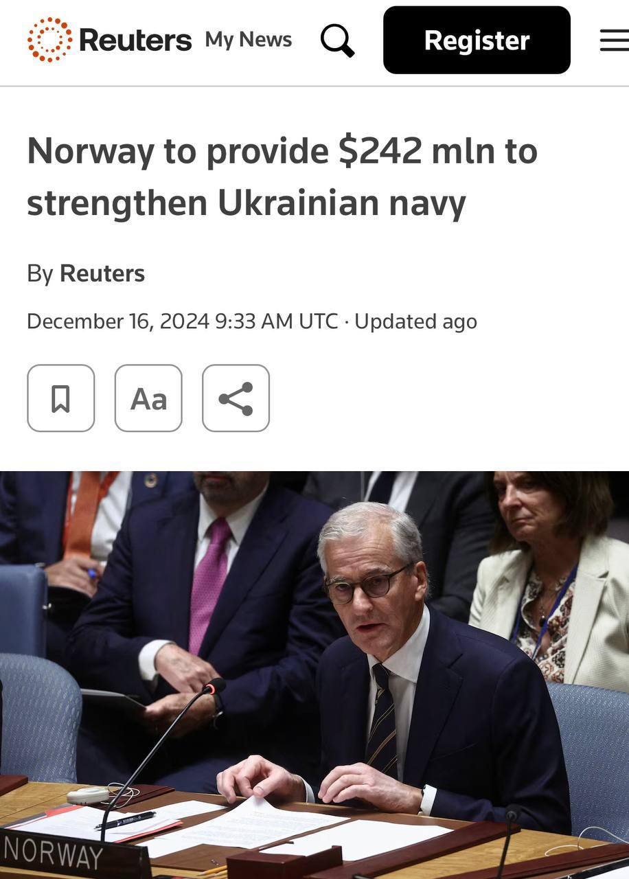 Норвегія надасть 242 мільйони доларів на посилення флоту України