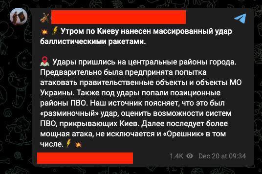 Планується сильний удар по Києву із застосуванням «Орєшніка», сьогодні була лише «розминка» для перевірки ППО.