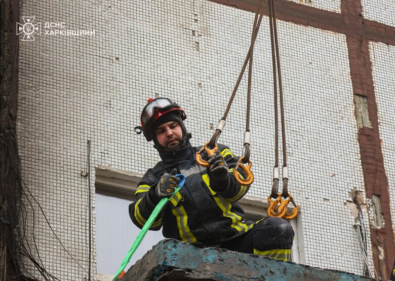 У Харкові рятувальники ДСНС разом із комунальними службами завершили роботи з усунення аварії та відновлення на місці атаки російського безпілотника, що потрапив у житлову дев’ятиповерхівку.