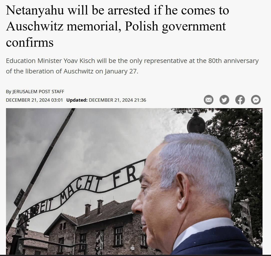 Уряд Польщі підтвердив, що Нетаньягу буде затримано, якщо він прибуде на 80-ту річницю звільнення концтабору Освенцим 27 січня, повідомляє Jerusalem Post.