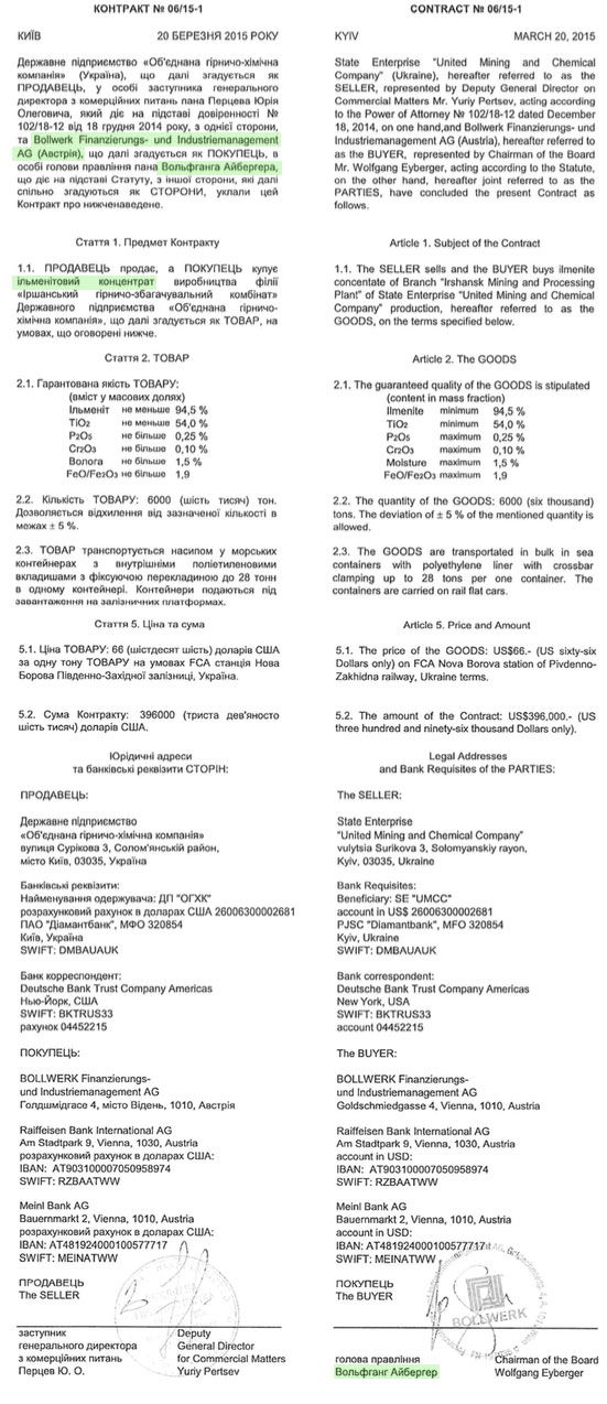 Посредником в приобретении продукции Вольногорского и Иршанского горнообогатительных комбинатов является другая австрийская компания под названием Bollwerk Finanzierungs- und Industriemanagement AG.