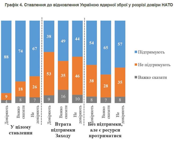 Також КМІС зазначає, що довіра до НАТО не суперечить бажанню відновити ядерну зброю.