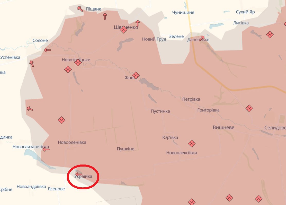 Армія РФ захопила село Українка, розташоване на південному фасі фронту неподалік від Покровська, повідомляють у DeepState.