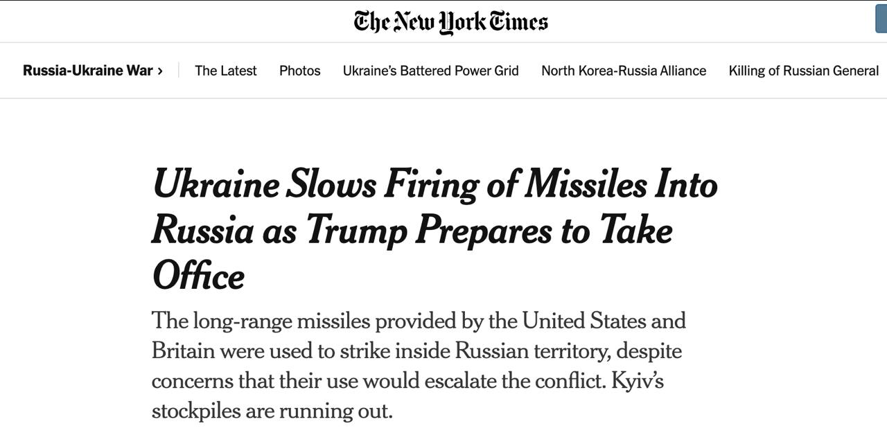 Чиновники НАТО повідомляють, що "ефективність ракет була обмеженою, вони не вплинули суттєво на хід війни". Однак і загострення, якого деякі побоювалися, не сталося. Американські чиновники вважають, що Москва не хоче ескалувати конфлікт до приходу Трампа, адже і без того має стабільне просування на фронті.