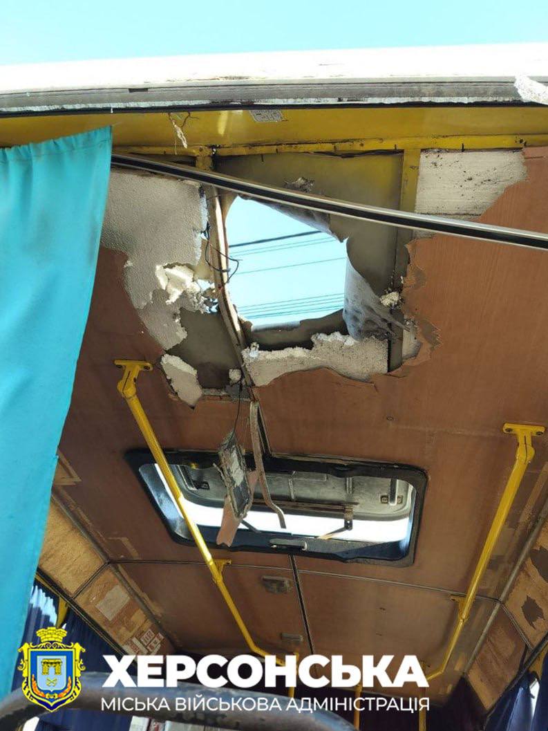 У Херсонській МВА повідомили, що російські окупанти атакували за допомогою безпілотників у прибережній зоні центральної частини міста одразу два маршрутних автобуси. У МВА підтвердили, що у одного з водіїв акубаротравма. Пасажири не постраждали. Транспорт пошкоджено.