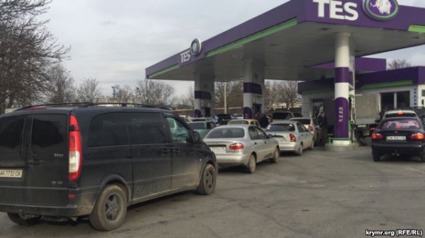 Горячая пора настала у АЗС. Как сообщает корреспондент Крым.Реалии, люди приезжают на заправки с канистрами и покупают сразу по 100 литров топлива. На некоторых АЗС стоят очереди из 40-45 машин. В отдельных районах Симферополя заправки уже закрыты.