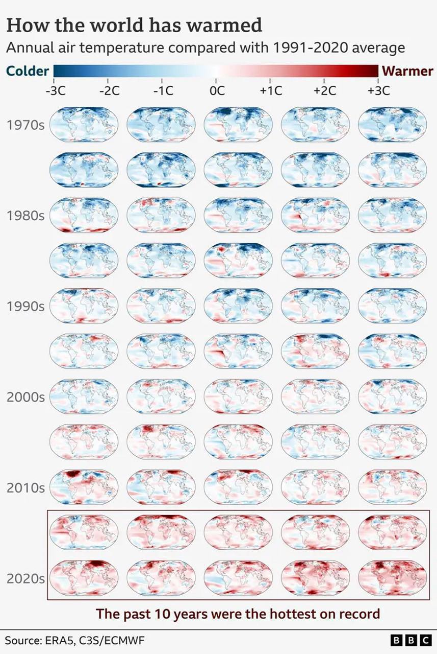 Не дивно, що останнє десятиліття стало найспекотнішим в історії. Основною причиною глобального потепління залишаються антропогенні викиди парникових газів, таких як вуглекислий газ, що продовжують накопичуватися в атмосфері.