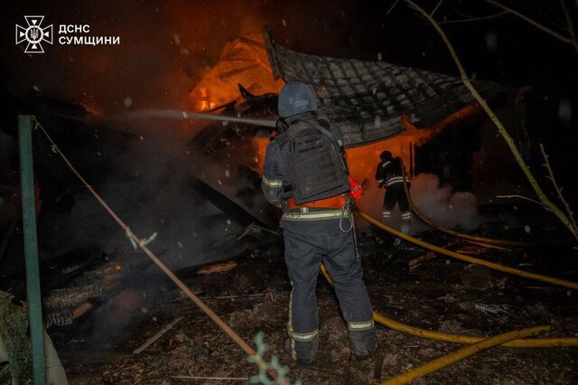 Увечері 12 січня Росія завдала удару безпілотниками “Шахед” по Сумській громаді, що викликало пожежі в житловому секторі та оздоровчому дитячому центрі.
