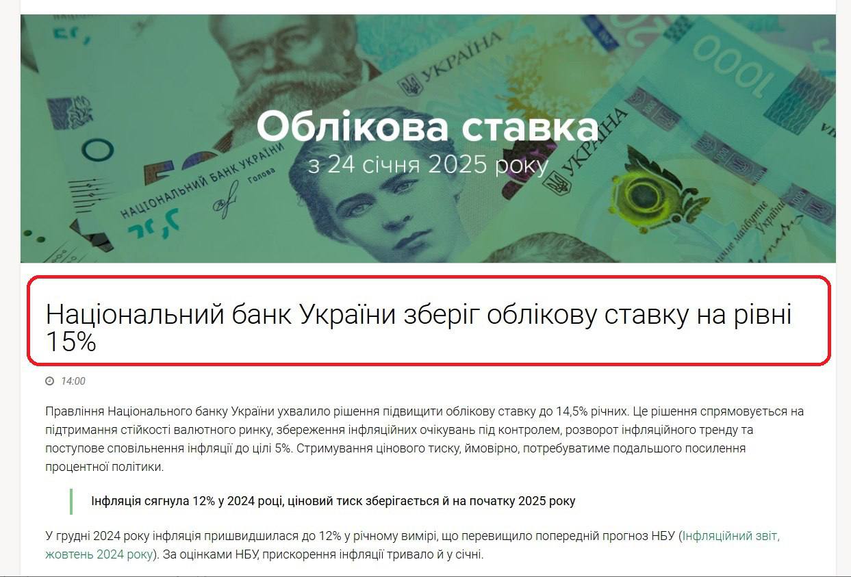 Згодом інформацію було виправлено, і НБУ уточнив, що ставка насправді була підвищена з 13,5% до 14,5%.