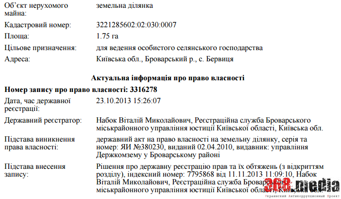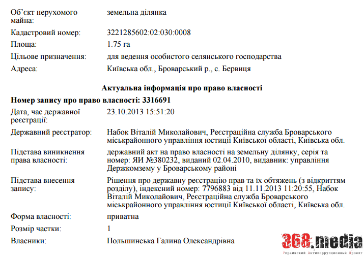 Напротив, в 2011 году человек с похожим ФИО зарегистрирован владельцем квартиры в селе Новоселки Киевской области (80,3 кв. метра).